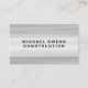 Moderne berufliche Baukarte. Personalisieren Sie Ihre Visitenkarte mit Ihrem Firmennamen und Ihren Daten für eine individuelle Visitenkarte für Bauer, Handwerker, Tischler und vieles mehr. Das edle Design mit silberfarbenem Metallhintergrund.