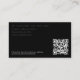 Ein modernes, schwarzes Design mit Ihren Daten und Ihrem QR Code. Diese elegante Visitenkarte ist ideal für alle Berufsgruppen. Eine einfache und berufliche Art, Ihr Unternehmen vorzustellen. Personalisieren Sie Ihre Daten, um Ihre eigene Visitenkarte zu erstellen. Eine perfekte Visitenkarte für jeden.