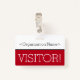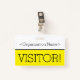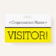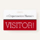 Dieses schlanke Abzeichen-Design beinhaltet die Meldung "VISITOR!" und einen benutzerdefinierbaren Firmennamen oder eine andere benutzerdefinierte Nachricht. Ein Abzeichen wie dieses könnte verwendet werden, um anzuzeigen, dass ein Besucher oder Gast an einem Arbeitsplatz dort sein darf. [~Z0000307]