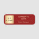 Ein roter Hintergrund, hellgelber Text. Personalisieren und fügen Sie Ihr Unternehmen, Firmenlogo, Mitarbeitername und einen Titel ein.