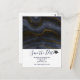 Eine Abschlussfeier Save the Date Postkarte. Entworfen mit einer schwarzen Graduierungshülse und einem schönen Bild von dunklem abstrakten Agrostein. Farben schwingen in Wellen. Die Hauptfarben sind schwarz, blau-grau und ein Imitat-Gold Band, das durch das Design läuft. Modern und trendig.