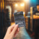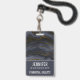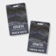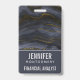 Namensschild mit einem wunderschönen Bild von dunklem abstrakten Agathgestein. Farben schwingen in Wellen. Die Hauptfarben sind schwarz, blau-grau und ein Imitat-Gold Band, das durch das Design läuft. Modern und trendig.