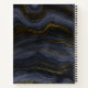 Spiral Notizbuch mit einem schönen Bild von dunklen abstrakten Agrostein. Farben schwingen in Wellen. Die Hauptfarben sind schwarz, blau-grau und ein Imitat-Gold Band, das durch das Design läuft. Modern und trendig.