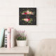 Moderner Black Polka Dot und Rose Personalisiert Quadratische Wanduhr