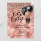Moderner Eleganter Glam Black Pink Rose Gold Glitzer Sparkle Confetti Ribbon Bow Ballon Party jedes Alter Geburtstag Einladung