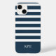 Moderner, blau-weißer Streifen mit Monogramm Case-Mate iPhone Hülle
