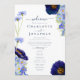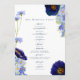 Schöne handbemalte Aquarellfarben und blühendes Blattwerk in Blau, Maisblume, Marineblau, lila und grünen Farbtönen, ideal für einen Frühlings- oder Sommertag der Hochzeit. Elegante moderne Typografie-Schrift in marineblau ergänzt das skurrile boho atemberaubende handgemalte Kunstwerk, zu dem auch Kornblumen, Mohn, Kosmos, vergiss mir Noten und zartes Blattwerk gehören. Das schicke böhmische Hochzeitsprogramm beinhaltet Zeremoniedetails und das Hochzeitsfest-Brautparty mit leicht zu personalisierenden Vorlagen, die sich perfekt für eine Frühjahrswiese, eine Hochzeitsfeier im Sommergarten eignen. Original-Kunstwerk von Catherine Sweetman
