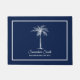 Fügen Sie Ihre eigene Touch zu diesem schlicht eleganten Design mit Ihrem Familiennamen oder Ihrer Phrase hinzu und bestimmen Sie das Datum in weißer Schrift und Palme, gerahmt in einem weißen Rahmen über einem marineblauen Hintergrund.