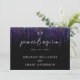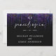 Modernes Abstraktes Save the Date - kühne lila funkelnd Garland kaskadiert die Seite hinunter, in handgeschriebener Kalligrafie ist "Bleistift in" - die Initialen von Paaren oben - die Erholung des Textes ist einfach und sauber - alles auf schwarzem Hintergrund. Elegante Hochzeitskunst.