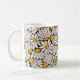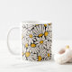 Retro Blumenkaffee Tasse mit Creme und Senf gelben Blumen Set auf einem schwarzen Hintergrund. Matching-Elemente verfügbar. Originale Kunst von Künstlern eigene Illustrationen. Bitte nutzen Sie den unten stehenden Button für die Nachricht, um weitere Anpassungen und spezielle Anfragen zu erhalten. © Zoe Chapman Design