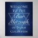 Wunderschöne dunkelblaue Farbtöne schaffen eine Textur wie Wasser auf diesem formellen Bar Mitzvah Willkommensplakat. Elegante weiße minimalistische Schrift auf einem Druck mit dem Namen Ihres Sohnes auf dem subtilen Stern von David zu feiern, das Kommen Ihres jüdischen Sohnes zu erleben.