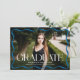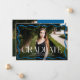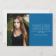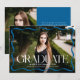 Feiern Sie Ihren Gymnasialabsolventen mit dieser stilvollen und modernen Ankündigung des Abschlusses, mit einem vollblütigen horizontalen Foto gerahmt durch eine glänzende, blau gewellte Grenze. "Graduate" wird in fett-blauen Schriften dargestellt, die eine Touch von Eleganz verleihen, während der Name, die Schule und das Klassenzimmer des Absolventen ein personalisiertes Detail darstellen. Auf der Rückseite befindet sich ein vertikales Foto mit Platz für Ihre individuelle Botschaft, das es zu einem idealen Ort macht, diese besondere Leistung mit Freunden und Familie zu teilen.