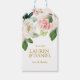 Diese Marke, die mit der Kollektion Moderner Pinsel koordiniert ist, ist elegant und elegant! Mit einem Rand aus rosa und weiß getönten Rose und Pionieren und grünem Blattwerk fügen diese Anhänger Ihrer Gastgeschenk Hochzeit eine persönliche Touch hinzu!