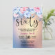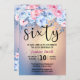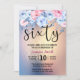 Schöne moderne 60. Geburtstag Einladung. Gestaltungselemente aus Aquarellhintergrund mit goldenem Glitzer und Blumenelementen in Rosa und Blau.