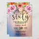 Moderne 60. Geburtstagseinladung. Designelemente aus blau , rosa funkelnd Hintergrund mit Glitzer und Blumenelementen. Bitte klicken Sie auf Anpassen, um Schriftart/ Farbe/ Stil usw. zu bearbeiten.