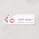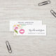 Elegante florale Visitenkarten mit einem Bouquet von Aquarellen bemalten Peony und Rose Blume in Pastelltönen von Rosa und Frühlinggrün, mit einem Paar volle Lippen in Blütenrosa. Personalisieren Sie die Vorderseite mit Ihrem Namen, Titel oder Firmennamen, und fügen Sie Ihre vollständigen Kontaktdaten, einschließlich Social Media Links oder Handles, auf der Rückseite ein.