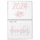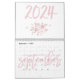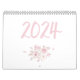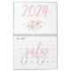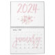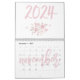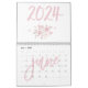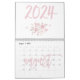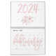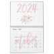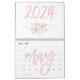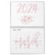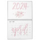Moderner Wandkalender 2024 mit wunderschönen Illustrationen von Rose und rosa Schriftzeichen im Kalender.
