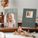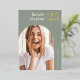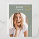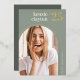 Die moderne Ankündigung des Foto Abschlusses zeichnet sich durch ein vertikal oder portrait orientiertes Foto in einem einzigartigen Gewölbe auf einem mit Goldfolienbespannung akzentuierten, schlängelgrünen Hintergrund aus. Der Name des Absolventen und das Abschluss-Jahr erscheinen oben, der Schulname unten rechts. Fügen Sie der Rückseite eine persönliche Nachricht und ein zusätzliches Foto hinzu.