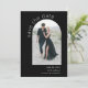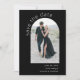 Schöne Einfachheit und künstlerischer Boho Stil machen diese moderne Bogen Hochzeit speichern Sie die Dattelkarte Pop mit Anziehungskraft. Es verfügt über eine bogenförmige Fotoplatte auf der Kartenvorderseite, um Ihr gewünschtes Foto hochzuladen. Auf der Vorderseite der Karte befindet sich eine Textvorlage, die Sie mit den Namen der Braut und des Bräutigams und dem geplanten Hochzeitstag personalisieren können. Auf der Rückseite dieser Karte befindet sich eine Beispielnachricht mit zusätzlichen Details, die Sie personalisieren können, zusammen mit einer QR-Code-Vorlage, die es den Gästen erleichtert, Ihre Hochzeitswebsite zu sehen. Diese Karte ist hier mit einem schwarzen Hintergrund in stylishen Farben dargestellt und ist auch in anderen Farben erhältlich.