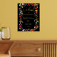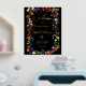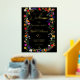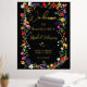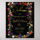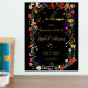 Moderne bohenhafte wilde Blume Böhmisches Brautparty Begrüßungsschild mit echter Goldfolie. Die botanischen Blume in Rosa, Rot, Grün und lila Farbtönen, inspiriert von Wildblumen und rustikalen Aquarellen-Gärten mit subtiler Vegetation und moderner boho-Schrift-Typografie auf dunklem Hintergrund.