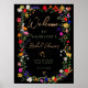 Moderne bohenhafte wilde Blume Böhmisches Brautparty Begrüßungsschild. Die botanischen Blume in Rosa, Rot, Grün und lila Farbtönen, inspiriert von Wildblumen und rustikalen Aquarellen-Gärten mit subtiler Vegetation und modernen bohischen Schriftzeichen auf Schwarz