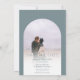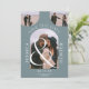 Moderner Bohnoarch 4 Fotos heiraten Save the Date staubblau und weiß. Eine coole, einfache und minimalistische Anordnung mit böhmischer Wüstenatmosphäre. Ideal für lässige Hochzeiten im Freien.