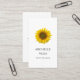 Moderne Boho Event Planner Visitenkarte, mit einem einfachen gelben Sonnenblumendesign auf weißem Hintergrund. Mit anpassbarer Schrift können Sie Ihre eigenen Informationen hinzufügen. Ideal, um Ihr Event-Planer-Geschäft im rustikalen Stil zu fördern.