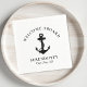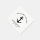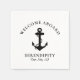Moderne nautische Papierservietten für Ihr Boot, die eine Illustration eines schwarzen Ankeres und "Welcome Bard" sowie den Namen und die Lage Ihres Bootes in eleganter Typografie und Schrift enthalten.