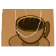 Früh morgens, regnerische Tage, eine Tasse Kaffee in einem gemütlichen Café. Im großen Design des "Coffee, bitte!" finden Sie eine Single-Tasse mit Dampfkaffee auf einem gemütlichen braunen Hintergrund im modernen Retro-Stil.