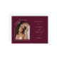 Diese Save the Date Verlobung Ankündigung Einladung Postcard verfügt über einen eleganten Kalligraphie- und Typografie-Schriftart mit einer Bogenform und Foto auf bordeauxrotem Hintergrund und QR-Code. Die Einfachheit dieses Designs fügt eine Touch von Eleganz zu Ihrer Hochzeit speichern Sie die Datum Einladungskarten. Es funktioniert mit vielen Hochzeitsthemen und ist definitiv eine großartige Ergänzung zu Ihrer Hochzeit. Einfach Namen und Formulierungen in ein paar einfachen Schritten anpassen und die Postkarte mit Ihrem Foto des glücklichen Paares personalisieren und den QR Code durch Ihren auf der Rückseite ersetzen, um Ihrer Postkarte eine angenehme persönliche Touch zu geben. Bitte beachten Sie: Der Bogen-Formsatz "Save the Date" und das elegante Kalligrafieschreiben "und" und der Wortlaut "Formal Invitation to follow" auf der Vorderseite UND das "Save the Date" auf der Rückseite zusammen mit den Zeilen auf der Vorderseite und auf der Rückseite und anderen grafischen Kunstelementen können nicht bearbeitet, verschoben oder gelöscht werden. Sie sind behoben.