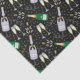 Dieses festliche Tissue Paper zeigt niedliche Illustrationen von Champagnerflaschen und Gläsern auf schwarzem Hintergrund mit Gold- und Silberakzenten. Perfekt, um Geschenke für Neujahrsfeiern oder andere Feiern zu verpacken.