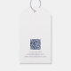 Elegante moderne schicke Monogram Navy & White QR Code Business Hang Tags. Moderne minimalistische Design mit trendigem Marinebild mit modernem weißem Typografie-Monogramm und QR-Code in tiefkönigsblau auf Elfenbeinweiß. Passen Sie Ihren Text an und fügen Sie Ihre URL dem QR Code Generierungsfeld hinzu. Alle Schriftart, Texte und Farbtöne können auf Ihre Bedürfnisse zugeschnitten werden. Wir laden Sie ein, unseren Zazzle-Shop, GJ Design Co, für passende Produkte und mehr zu besuchen.