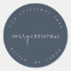 Diese modernen, schicken und marineblauen Aufkleber mit runder Rücksendeadresse sind perfekt für einen stilvollen Urlaubskarte oder Einladungsumschlag. Dieses einfache Boho Design zeichnet sich durch klassische, raffinierte Kalligraphie in rustikalen dunkelmarineblau-blau und weiß aus.