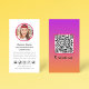 Moderne Visitenkarte mit Social-Media-Icons für einen Content-Creator oder einen Einflussnehmer. Es verfügt über einen scannbaren QR-Code auf der Rückseite und vorne über das Profilbild, den Account-Handle, die Beschreibung und den Speicherplatz, um Ihre E-Mail, Website oder jeden beliebigen benutzerdefinierten Text hinzuzufügen, den Sie benötigen. Entfernen oder fügen Sie soziale Medien-Symbole hinzu oder personalisieren Sie sie, indem Sie auf die Schaltfläche klicken, um das Design zu bearbeiten.