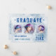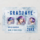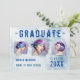 Cooler, moderner Grunge-Stil, 4 Foto - doppelseitige Abschluss-Ansichtskarten in Blautönen. Dieses einzigartige, maßgeschneiderte Design zeigt Ihre persönlichen Fotos, Namen, Abschluss Jahr und High School, Uni oder Universitätsname, die auf einer Mauer in Not gemalt wurden.