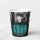 Personalisierte Abschluss Papiertassen mit dem Foto des Absolventen mit "Grad" in cyan neon Buchstaben. Personalisieren Sie die Papiertassen des Neon Abschlusses, indem Sie den Namen und den Abschluss des Absolventen hinzufügen. Die Neonpapiertassen eignen sich sowohl für Partys der Oberstufe als auch für Uni-Abschlüsse.