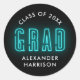 Moderner Cyan Neon Abschluss Runder Aufkleber