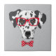 Dieses Ausrüstungsbeschreibungen, die ein Hand gezeichnetes Porträt des Dalmatiners in den roten Gläsern und in der Herzentwurfsbogen-Krawatte kleidete.
