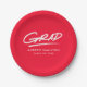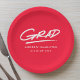 Moderne Abschluss-Papier-Teller mit "Grad" in weißer handgeschriebener Schrift mit gestrichelter Unterstreichung auf rotem Hintergrund. Personalisieren Sie die Teller des roten Abschlusses, indem Sie den Namen und Abschluss des Absolventen Jahr. Die personalisierten Abschluss Papier Teller sind sowohl für High School- als auch für Uni-Abschluss-Partys geeignet!