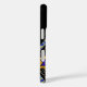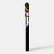 Dress your Samsung Smart Phone for Success mit diesem auffälligen Fall mit Leslie Sigal Javorek's original digitales Gemälde eines Paares konzentrischer Sterne von David aus Multimuster Streifen in den Tönen Royalblau, lila & Senfgelb. 2 anpassbare Textfelder sind auf einem glänzenden schwarzen Hintergrund in einem Stil angelegt, der von den Filmen der 60er Jahre inspiriert wurde.