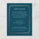 Holen Sie sich diese modernen Detailkarten und stellen Sie sicher, dass sich niemand auf dem Weg zu Ihrem Hochzeitstag verirrt, indem Sie sie an Ihre Gäste schicken, alle Details, den Transport und die Unterkunft auf diesen modernen Deko-Detailkarten. Die von den Faltkleider aus den 1920er Jahren Inspirierten Karten verfügen über eine faszinierende Rose aus Imitaten, die eine goldene Folienabdeckung auf einem dunkelblauen Hintergrund mit zeitloser weißer Typografie aufweist. Der Backer hat ein wunderschönes Vintages Imitat Rose Goldfolie Muster und es passt perfekt zur Erholung dieser "Vintag Beaded" Hochzeitskollektion. Die Farbkoordinierung ist wichtig! Passen Sie sie mit Ihrer Hochzeitsfarbenpalette und Infos an.