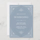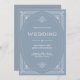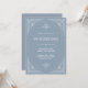 Diese glamourösen Hochzeitseinladungen besticht durch eine moderne Besinnung auf den klassischen Deko. Ein verzierter, weißer geometrischer Rahmen und eine Verzierung schmücken einen eleganten, staubblauen Hintergrund für einen dramatischen, altertümlichen Hochzeitslook. Die Rückseite bietet Platz für zusätzliche Hochzeitsgast-Details, sowie einen scannbaren QR-Code, damit die Gäste online auf Ihrer Hochzeitswebsite reagieren können.