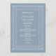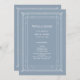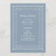 Dieses glamouröse Hochzeitsprogramm besticht durch eine moderne Kulisse für den klassischen Deko. Ein verzierter, weißer geometrischer Rahmen und eine Verzierung schmücken einen eleganten, staubblauen Hintergrund und sorgen für ein Vintages und herzliches Ambiente.
