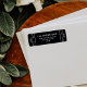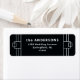 Diese glamourösen Hochzeitsfeier-Rücksendeadressen-Aufkleber zeichnen sich durch einen modernen Akzent auf dem Deko der klassischen Kunst aus. Weiße geometrische Ränder und Ornamente schmücken einen eleganten dunkelonyxen schwarzen Hintergrund für einen dramatischen, altmodischen Hochzeitslook.