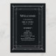 Dieses glamouröse Hochzeitsprogramm besticht durch eine moderne Kulisse für den klassischen Deko. Ein verzierter, weißer geometrischer Rahmen und eine Dekoration zieren einen eleganten, dunkelonyxen Hintergrund für ein Vintages Begrüßungsprogramm.