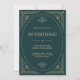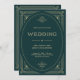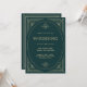 Diese glamourösen Hochzeitseinladungen besticht durch eine moderne Besinnung auf den klassischen Deko. Ein geometrischer Rahmen mit verziertem Champagnergold und Ornamentieren schmücken einen eleganten smaragdgrünen Hintergrund für einen dramatischen, altmodischen Hochzeitslook.