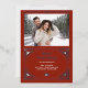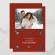 Diese glamouröse Hochzeit speichern die Dattelkarten mit einem modernen Drehbuch für den klassischen Deko. Ein verzierter geometrischer Rahmen und eine Verzierung aus Silberfolie zieren ein festliches Rot-Ambiente mit Ihrem persönlichen Foto für einen dramatischen, Vintagen Hochzeitslook der 20er Jahre. Ideal für Ihre elegante Weihnachtsfeier Hochzeit.