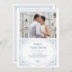 Diese glamouröse Hochzeit speichern die Dattelkarten mit einem modernen Drehbuch für den klassischen Deko. Ein verzierter, staubblauer geometrischer Rahmen und eine Verzierung schmücken einen schlichten, weißen Hintergrund mit Ihrem bevorzugten persönlichen Foto für einen dramatischen, altmodischen Hochzeitslook.