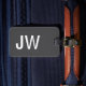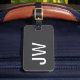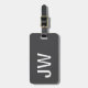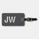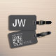 Coole, elegante, vollständig anpassbare Gepäckmarke mit dunkelgrauem Hintergrund und feinem Monogramm. Sie können QR-Code mit Ihren Kontaktdaten hinzufügen. Berufliche Suche nach Ihrem Gepäck, machen Sie jede Reise glatter mit einem personalisierten Gepäckanhänger.