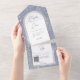 Moderner Dusty Blue & Snow Silver Foil QR Code All In One Einladung